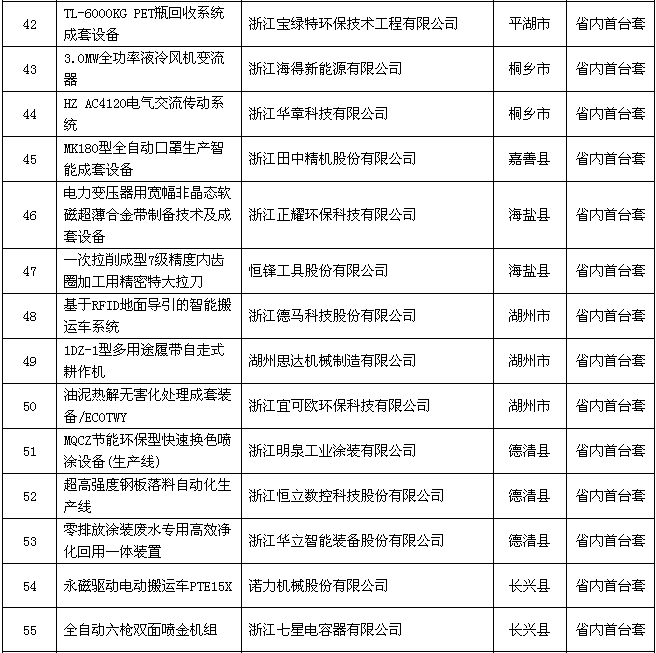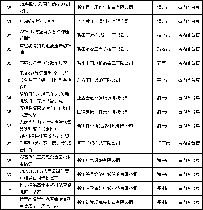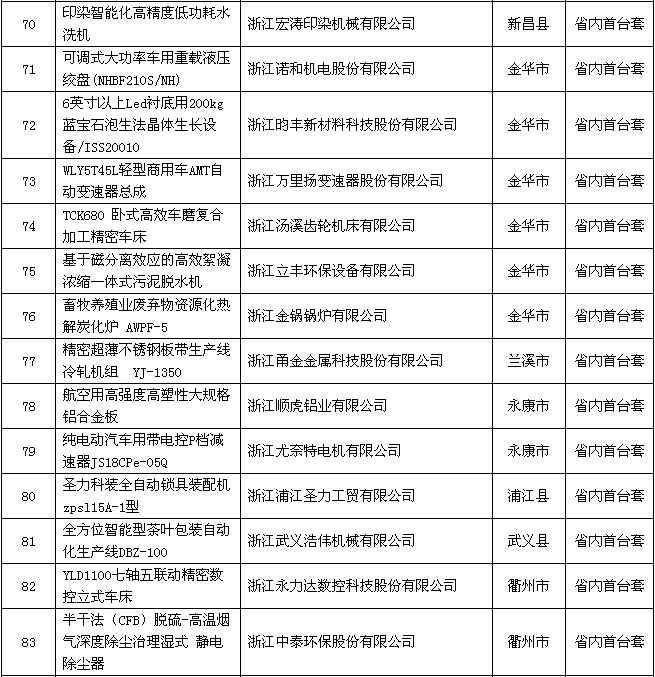 附件:2018年度浙江省裝備制造業(yè)重點領(lǐng)域首臺(套)產(chǎn)品認定結(jié)果公示名單