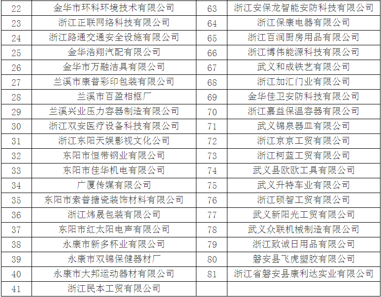 根據《金華市高新技術企業認定與管理辦法》(金政發﹝2009﹞92號)精神,擬認定浙江天寧合金材料有限公司等81家企業為金華市高新技術企業,現予以公示,接受社會監督。如有異議,請來人來電反映,以個人名義反映的,請署真實姓名;以單位名義反映的,須加蓋單位公章;匿名反映的材料不予受理。公示日期為10月31日至11月7日。