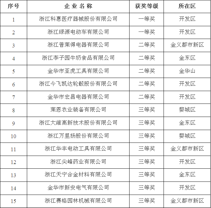 根據《金華市專利實施獎評選辦法》(金市科字〔2013〕31號)文件精神,在婺城區、金東區、金華開發區、金義都市新區、金華山旅游經濟區科技管理部門推薦的基礎上,經材料審查、實地核查、專家評審,擬對浙江科惠醫療器械股份有限公司等17家企業授予2017年金華市專利實施獎,現予公示,接受社會監督,公示期從2017年11月16日至22日止。如有異議,請來人來電反映。