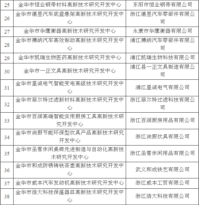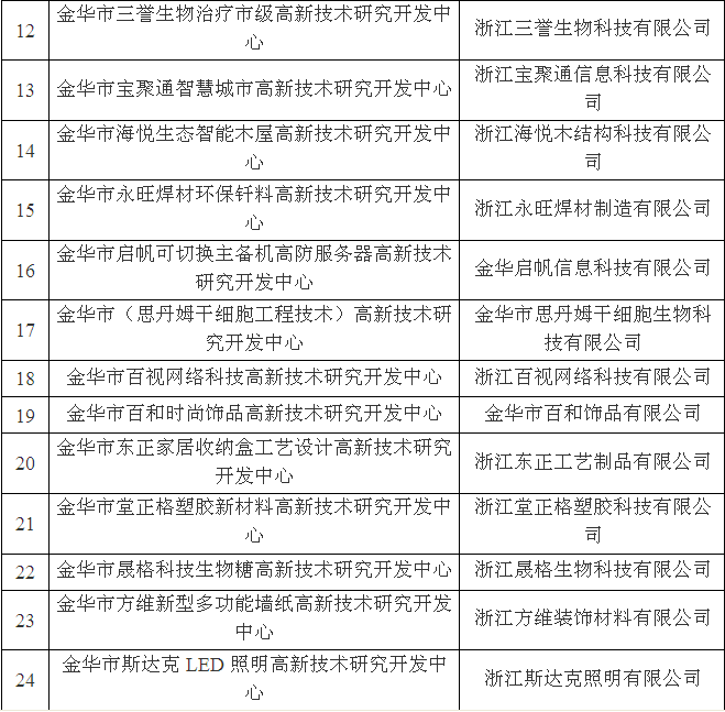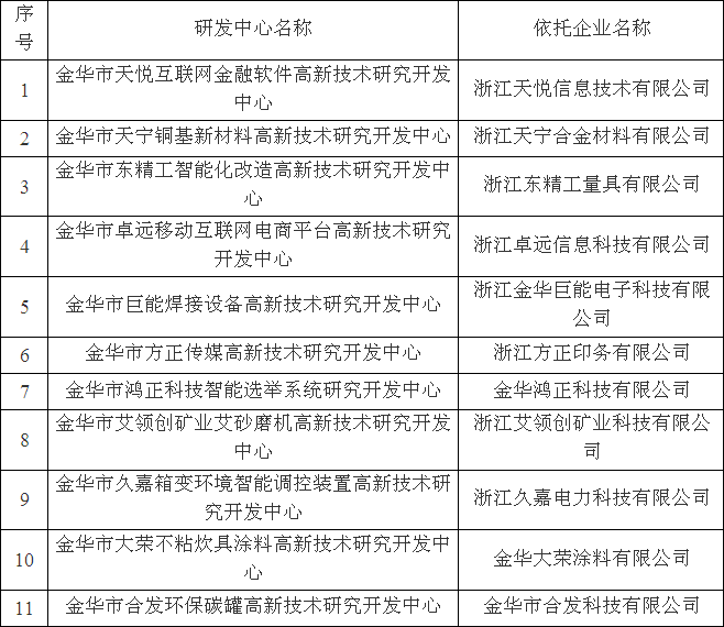 根據《金華市高新技術研究開發中心管理辦法》(金市科字〔2009〕23號),經研究,同意浙江天悅信息技術有限公司等41家企業組建市級高新技術研究開發中心。