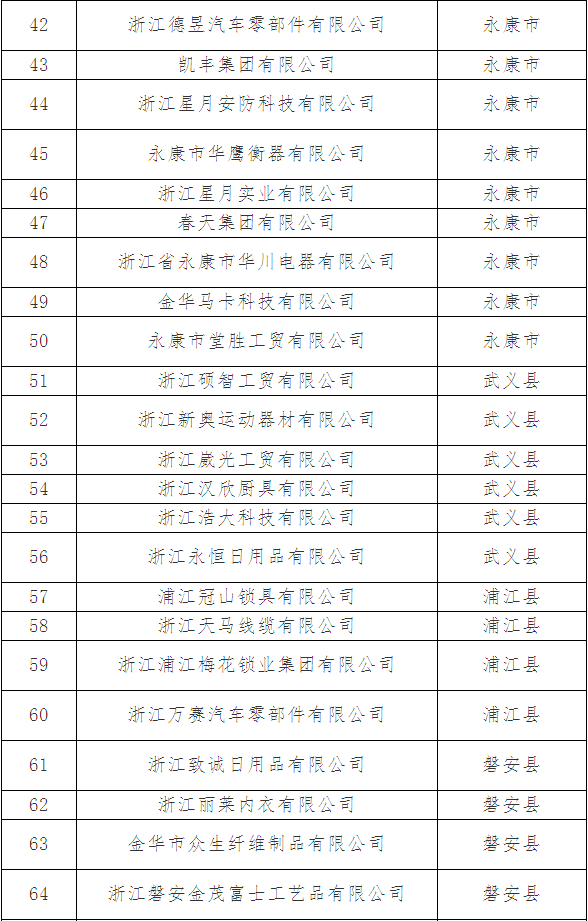 擬認定2018年金華市專利示范企業名單