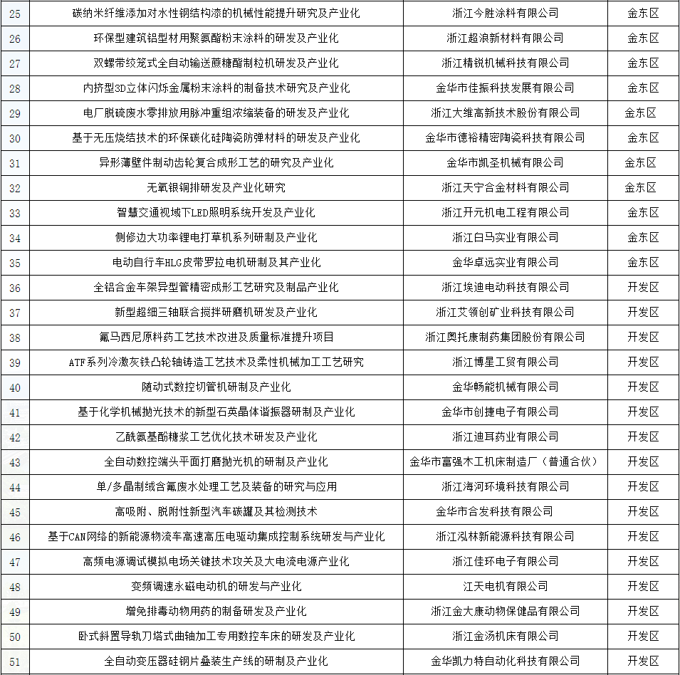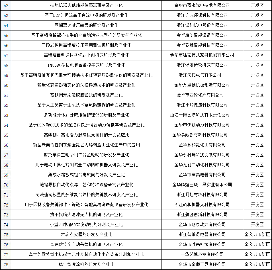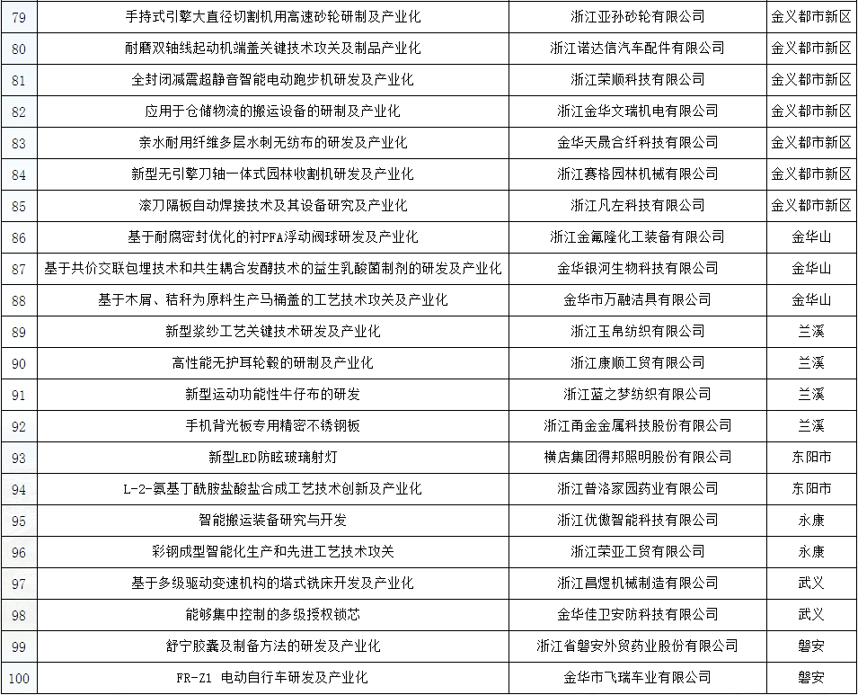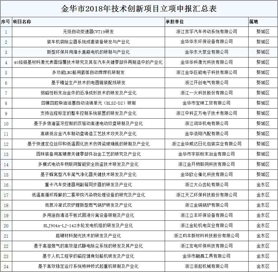2018年全市共申報項目216項,經形式審查,淘汰16項,共200項項目進入評審。目前評審結果,擬立項100項,其中婺城區15項,金東區20項,開發區39項,金義都市新區11項,金華山旅游經濟區3項,蘭溪4項,東陽、永康、武義、磐安各2項。