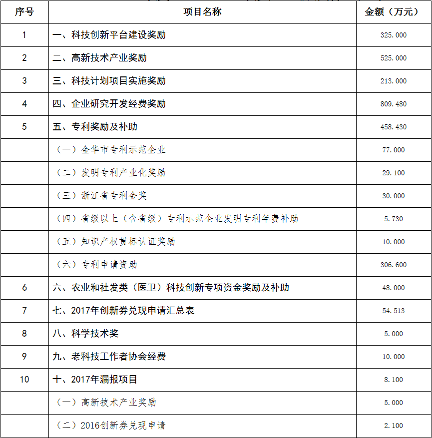 附件:2017年度科技創新專項資金獎勵及補助方案