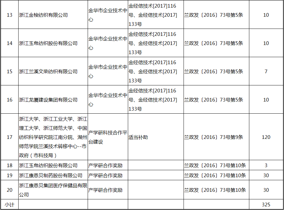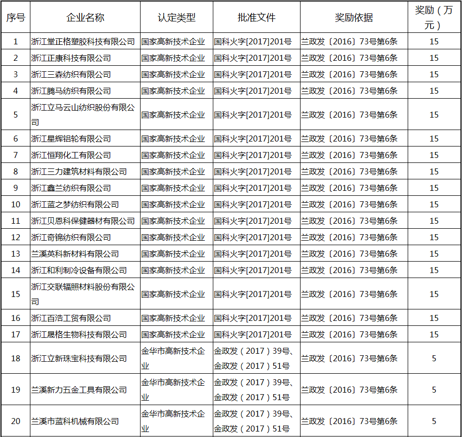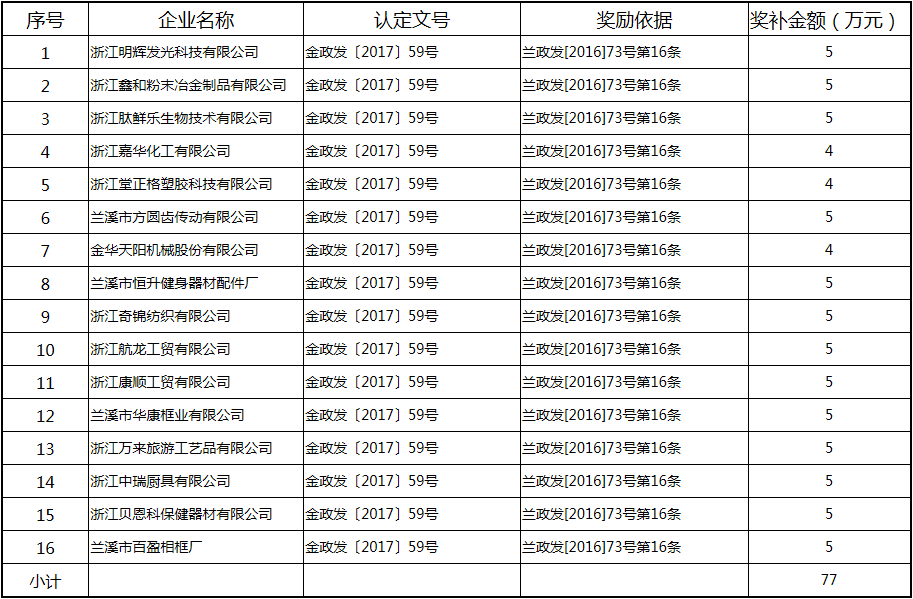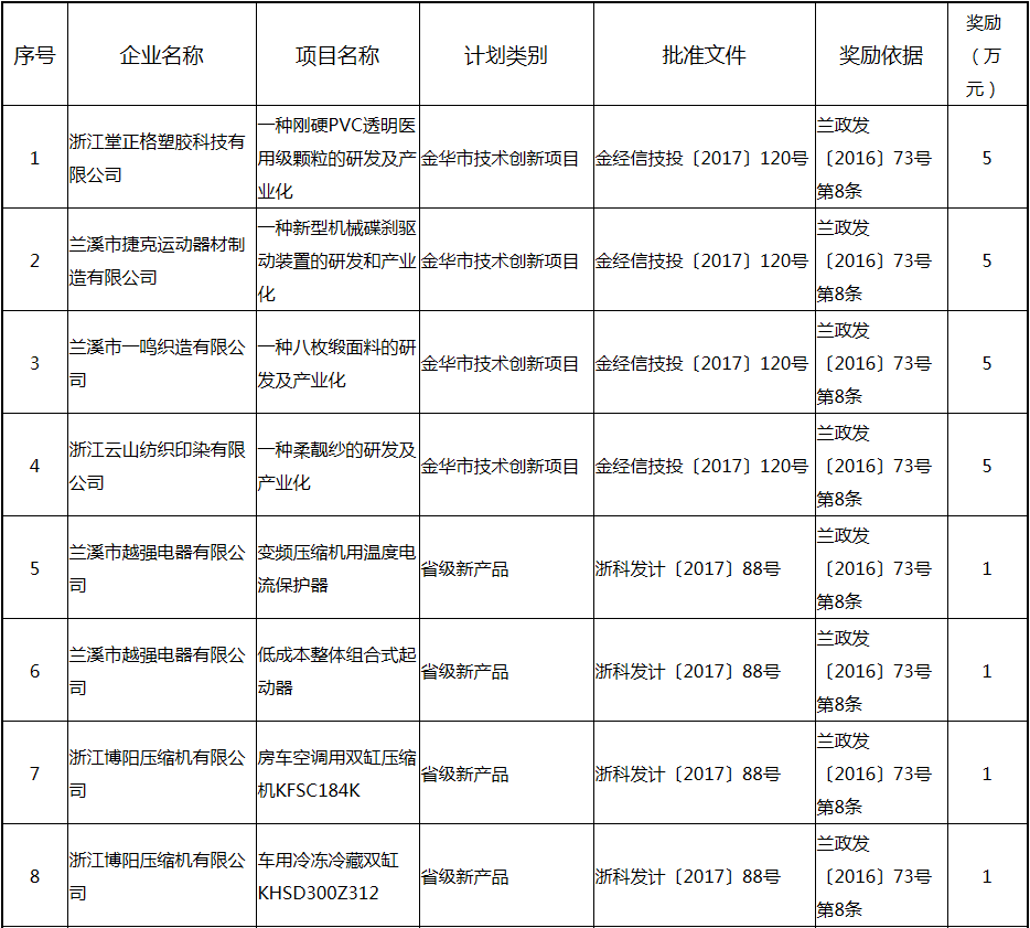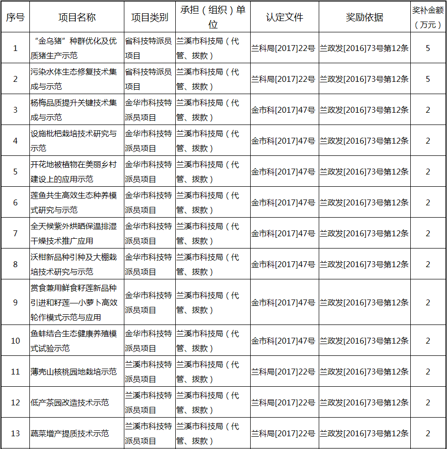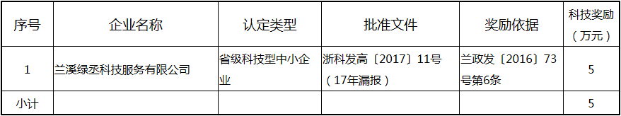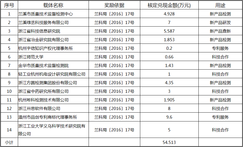 根據《關于實施創新驅動戰略大力推進大眾創業萬眾創新的若干意見》(蘭政發〔2016〕73號)和《蘭溪市科技創新券實施管理辦法》(蘭科局〔2016〕17號)等文件精神,現將2017年度科技創新專項資金獎勵及補助方案予以公示,公示期五個工作日,自2018年 7月3日至 7月9日。公示期內,如對公示擬補助對象有疑議的,請及時向市科技局辦公室反映。