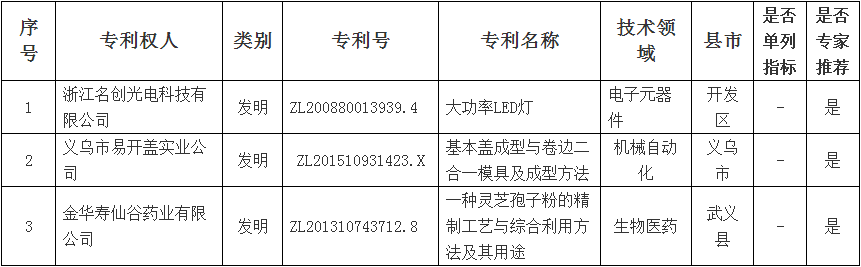 附件:2018年浙江省專利獎金華市擬推薦項目名單