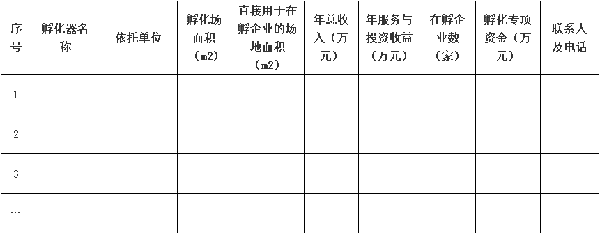 (一)各地科技主管部門要按照“省級以上高新區(qū)國家級科技企業(yè)孵化器(備案眾創(chuàng)空間)全覆蓋、各市、縣(市、區(qū))市級、省級科技企業(yè)孵化器(備案眾創(chuàng)空間)全覆蓋”的要求,加強科技孵化器的培育建設(shè),認真做好審核把關(guān)和推薦工作。