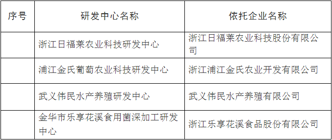 根據(jù)《關(guān)于深入實施創(chuàng)新驅(qū)動發(fā)展戰(zhàn)略大力推進(jìn)大眾創(chuàng)業(yè)萬眾創(chuàng)新的若干意見》(金政發(fā)〔2016〕14號)和《金華市農(nóng)業(yè)科技研究開發(fā)中心管理辦法》(金市科〔2009〕24號)等文件精神,在各縣(市、區(qū))科技局推薦的基礎(chǔ)上,通過初審、實地核查、專家評審和公示等程序,經(jīng)研究,認(rèn)定“浙江日福萊農(nóng)業(yè)科技股份有限公司”等4家企業(yè)組建的研發(fā)中心為金華市農(nóng)業(yè)科技研究開發(fā)中心,現(xiàn)予公布。