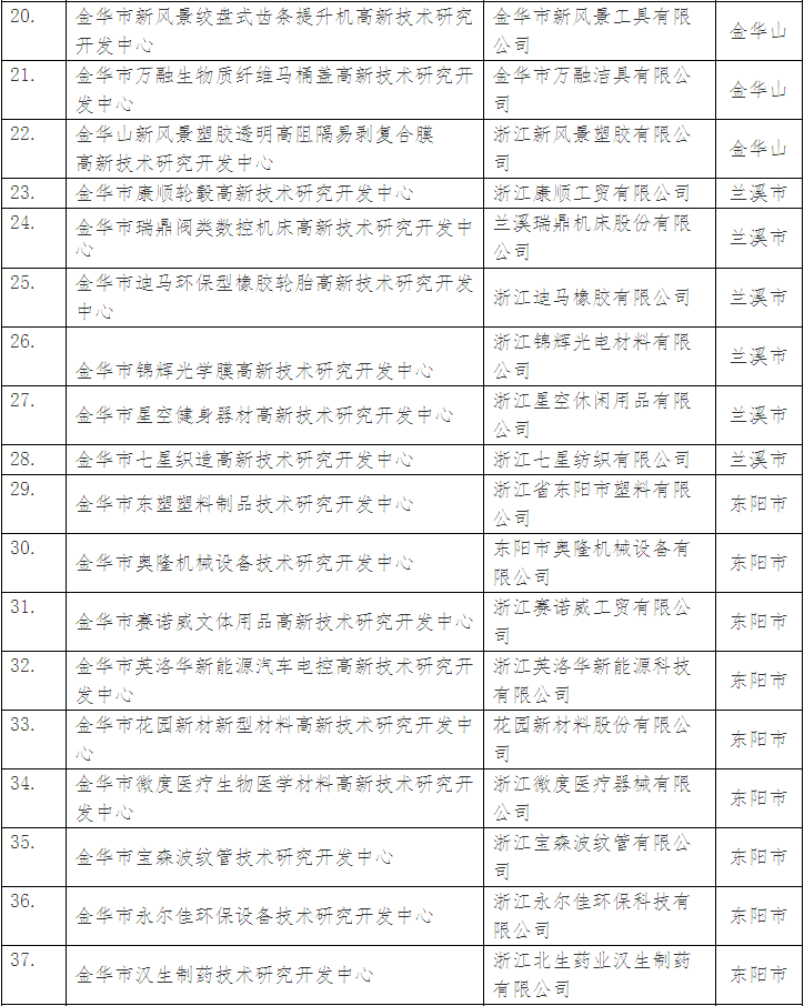附件:擬組建金華市高新技術研究開發中心名單