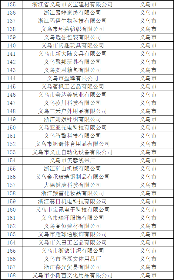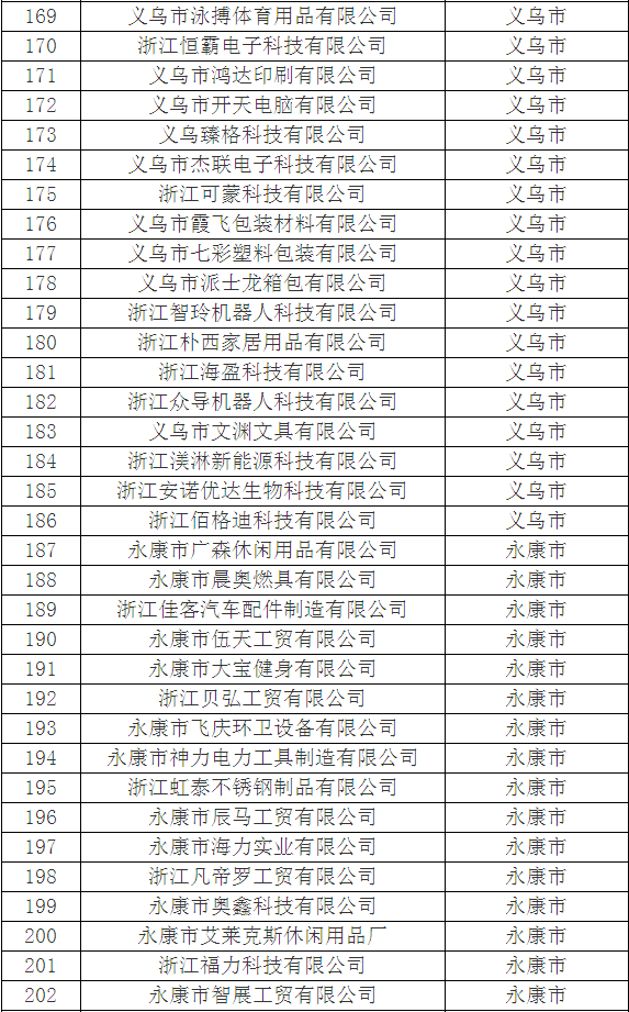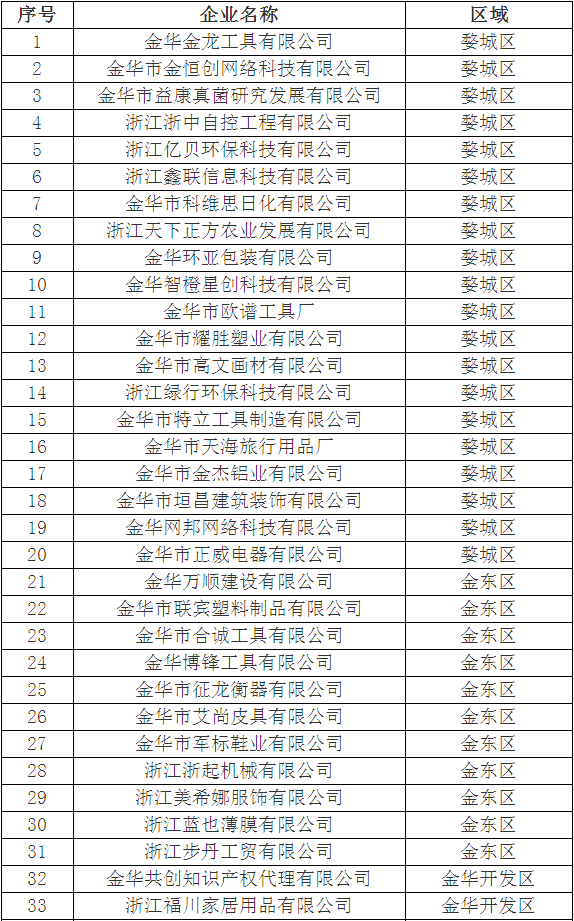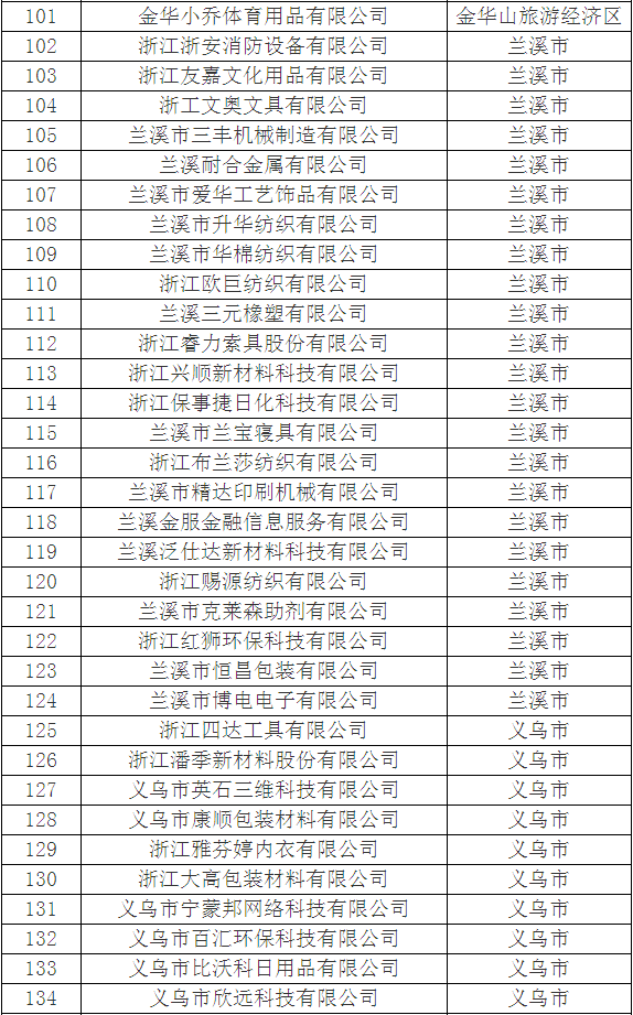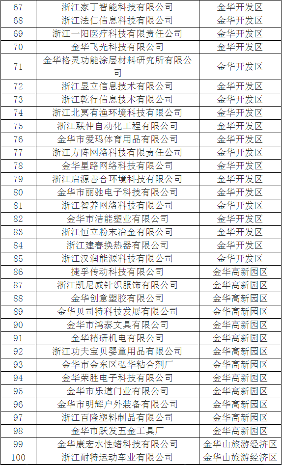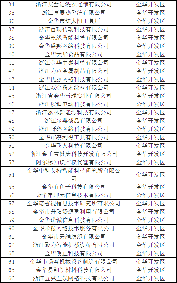 2018年金華市第三批浙江省科技型中小企業擬認定名單