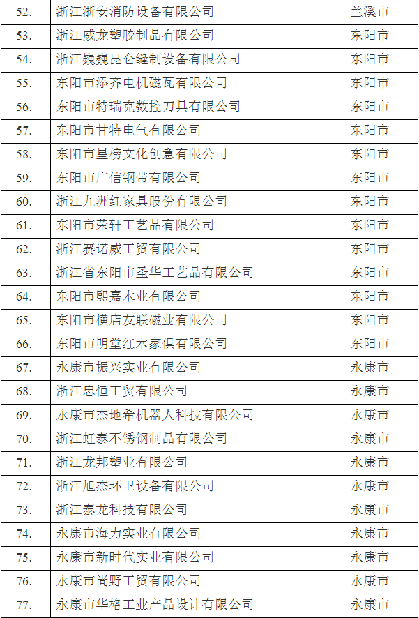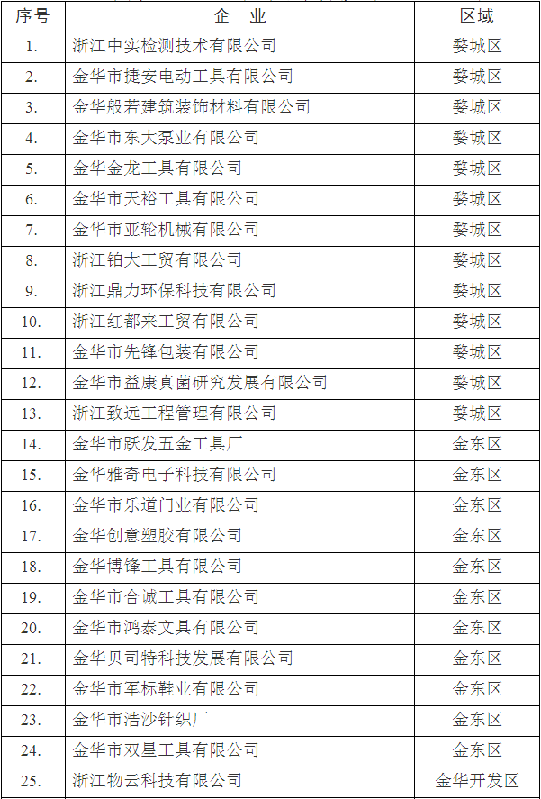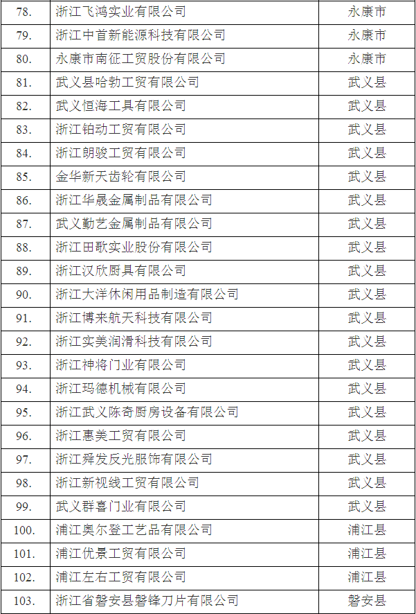根據(jù)《金華市人民政府關(guān)于印發(fā)金華市高新技術(shù)企業(yè)認(rèn)定與管理辦法》(金政發(fā)〔2009〕92號(hào))規(guī)定的條件和程序,報(bào)經(jīng)市人民政府批準(zhǔn),認(rèn)定“浙江中實(shí)檢測技術(shù)有限公司”等103家企業(yè)為2018年第二批金華市高新技術(shù)企業(yè)。